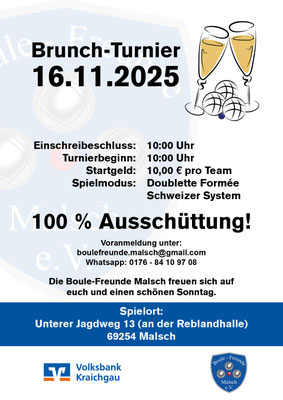 Nachdem man mit dem ersten Brunchturnier, dem 3er-Cup und den Ortsmeisterschaften erfolgreich in unsere Turnierserie gestartet ist, stehen nun das zweite Brunchturnier an.