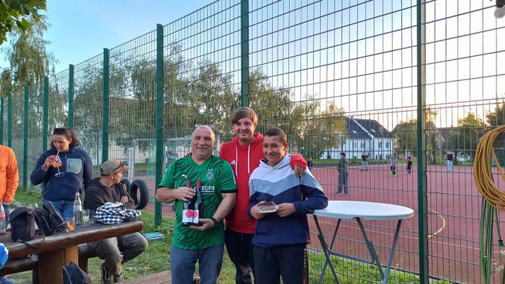 Am vergangenen Samstag fand unser 3er-Cup auf heimischem Gelände statt. Nachdem sich 23 Teams eingefunden hatten, konnte man pünktlich mit leicht einsetzendem Nieselregen in das Turnier starten. Im Verlauf der ersten Partie nahm leider der Wettergott seinen großen Wassereimer in die Hand und ergoss ihn über uns. Man unterbrach für kurze Zwischenzeit die erste Partie, versuchte sich etwas zu trocknen und zu wärmen, sodass man in den kommenden Partien voll startklar war. Die nachfolgenden Partien wurden leider immer wieder von einsetzendem Regen geprägt, jedoch kämpfte jedes anwesende Team um den ersten Platz des 3er-Cups.